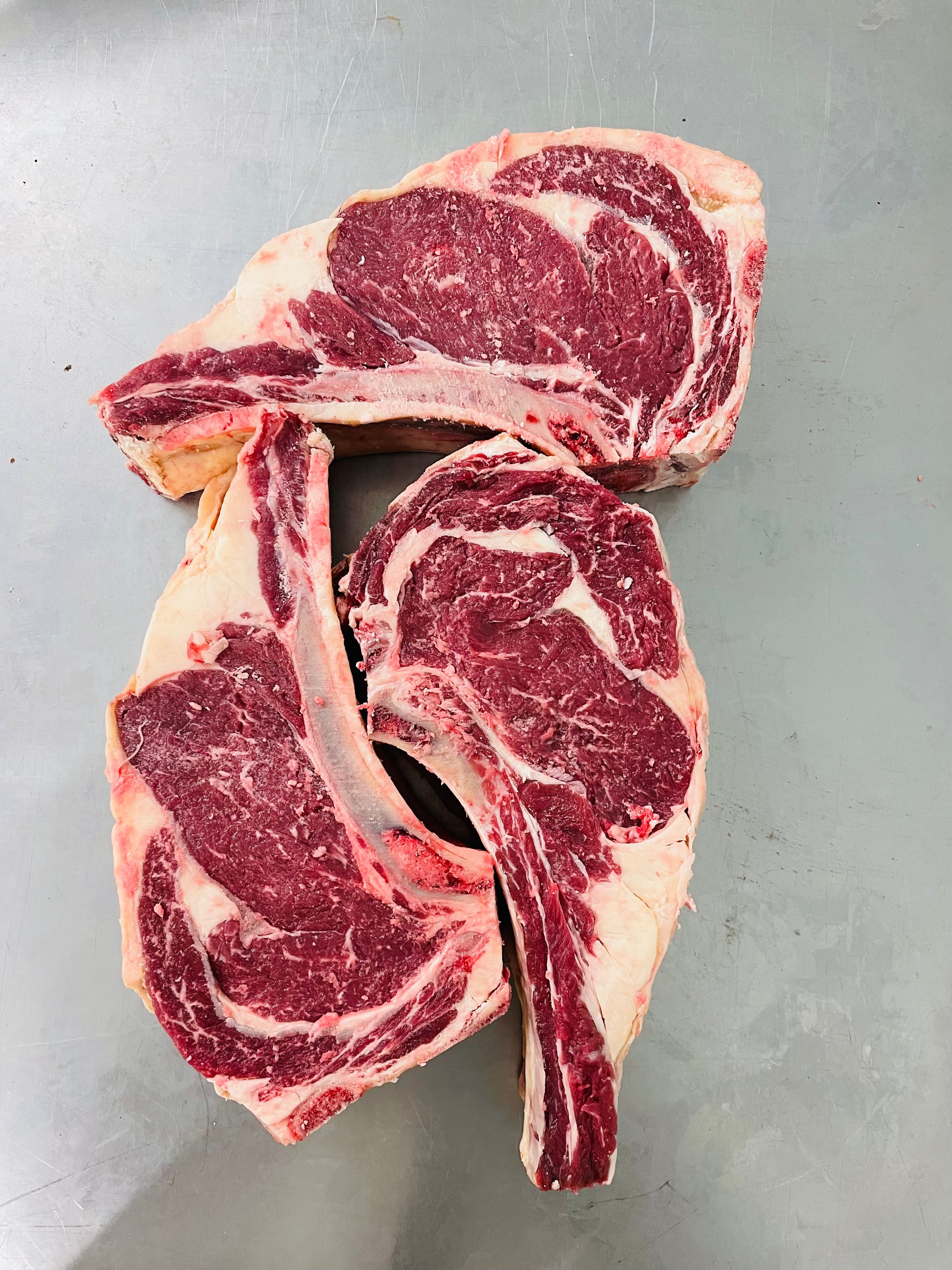 différents colis composés de pièces à griller (côte à l'os, rumsteck, bavette,
