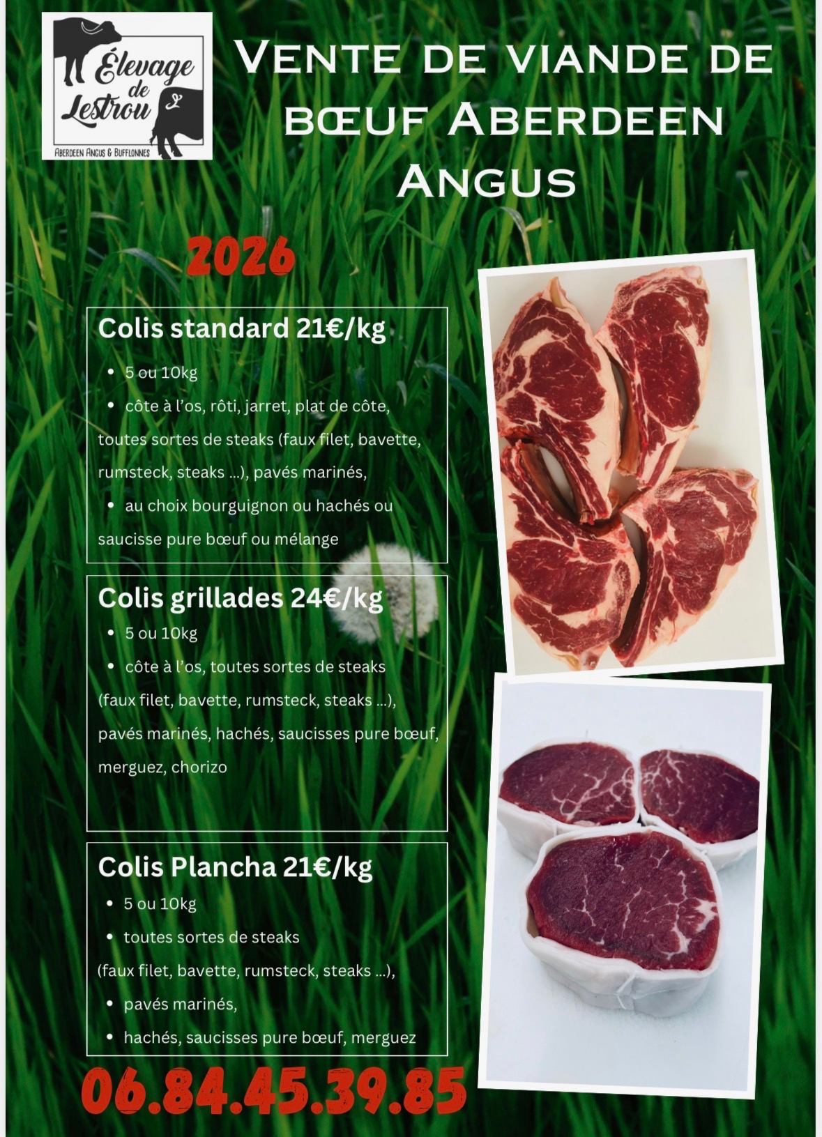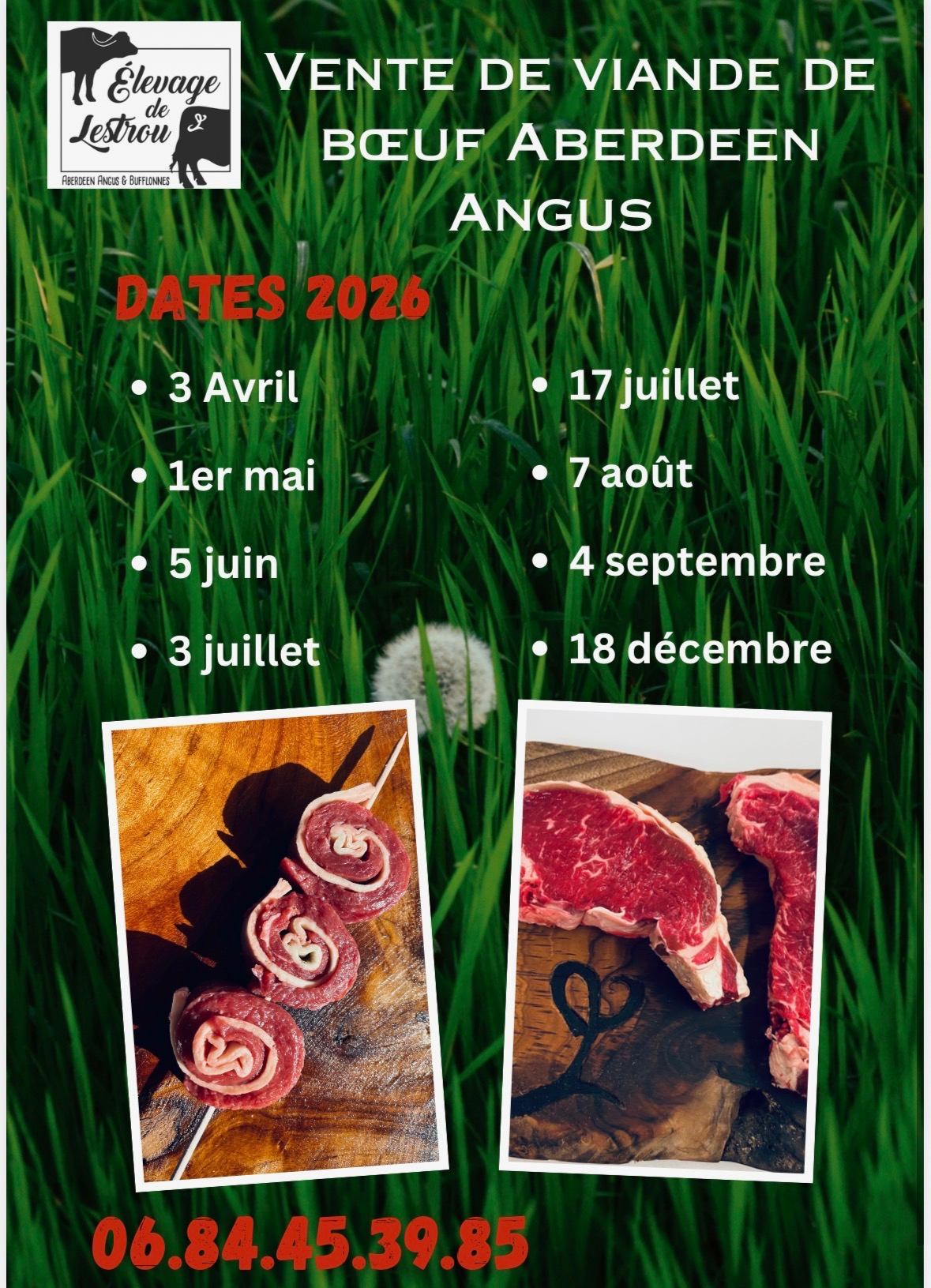Éleveuse de vaches (46), je vous propose la vente de bovins et de viandes de races Aberdeen-Angus, ainsi que la vente de fromage de Bufflonne laitière.